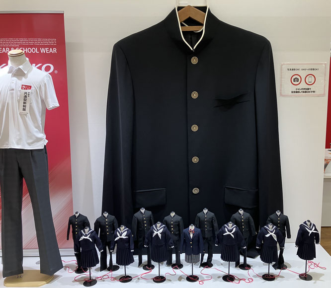 ぜひジャンボ学生服とかわいいミニ学生服、一緒に店頭で記念撮影はいかがですか?